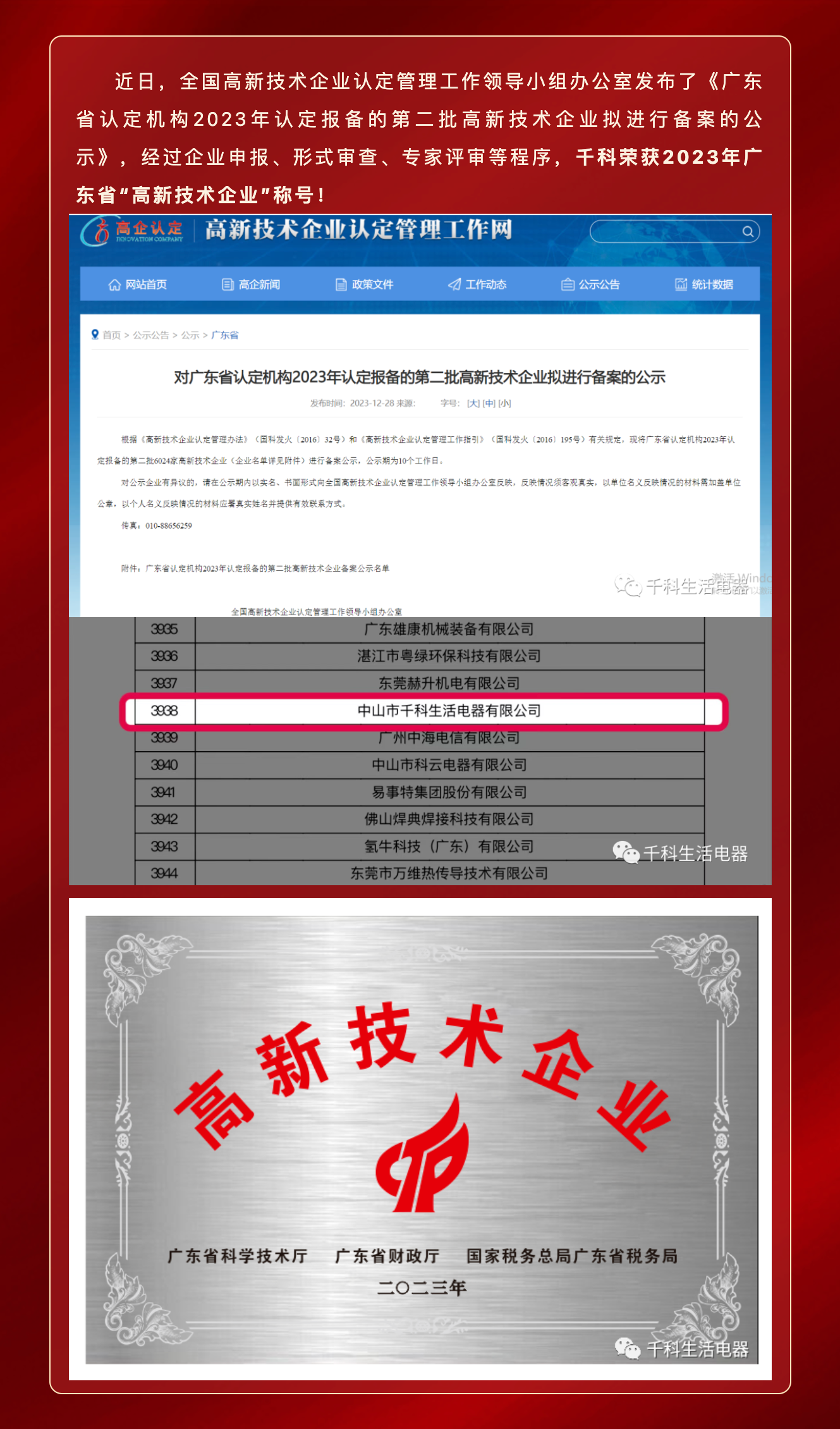 新年喜訊 | 廣東中山千科生活電器有限公司榮獲“國(guó)家高新技術(shù)企業(yè)”認(rèn)定!